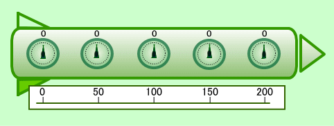 次に25万kmずつ前方の時計を4番、3番、2番として、最前方の時計を1番時計とすると、それぞれ図のように