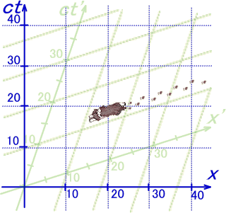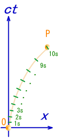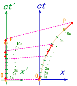 ふむふむ。 速度が付くにつけ座標軸の時間間隔が間延びしていくのが分かる。