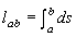 軌跡の位置を指定するパラメータとして距離sを用いa、b区間を積分する。