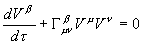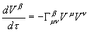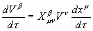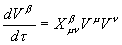 という事で、Vは4元速度だったとする。そうすると左辺(Vpβ-Voβ)は微小距離を隔てた速度差と読め、dVと書き表せる。さらにdτで両辺を割ると、