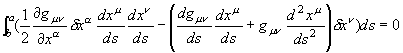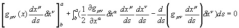 第1項の は滑らかな変形という条件(つまり両端は変形しない)から来るδx(a)=δx(b)=0により0となり消去される。さらにdsによる積の微分*1を展開して