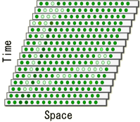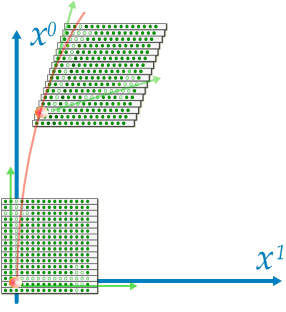 幸いな事に、その時空間は座標軸が斜交しているだけで、(ついでに間延びしているだけで)直線の座標系で表すことがけきました。