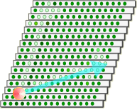アレイカメラの静止系(青)に対して、緑の系を高速に移動させてみる。