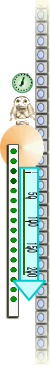 次に、青の重力場系座標上に、これに対応するエレベーターの時間軸をプロットしてみる。