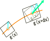 各線素の傾き、および巾は一致しています。 ですから、線上に分布する4元速度ベクトルも各々一致し、同じ成分を持っています。