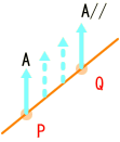 平らな空間で、ベクトルAを直線、つまり測地線に沿ってPからQに平行移動させた場合、