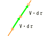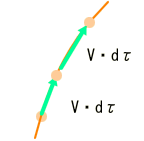 まず、平らな時空間(ミンコフスキー時空)での直線、つまり測地線に沿った4元速度ベクトルの分布状況です。 線素dsとV・dτは一致します。