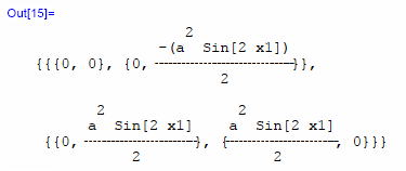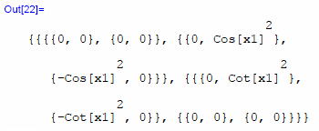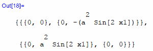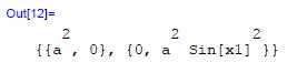 gxx=DiagonalMatrix[a^2, a^2 Sin[x1]^2 ]