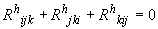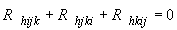 さてこのルールを曲率テンソルに適用する。TをRに換え、変数はbi1[h,i,j,k,l]とし、(i,j,k)を巡回させて、残りの二つの項bi2、bi3を生成する。