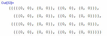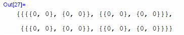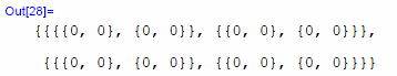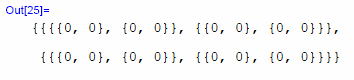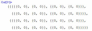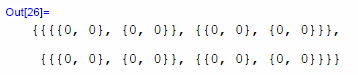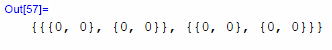 この数式処理では、行列をリストとして扱い、その要素を{ }で囲って表現する。 このOut[12]のリストは