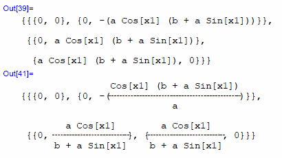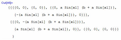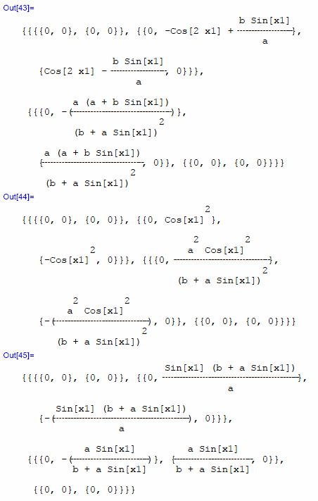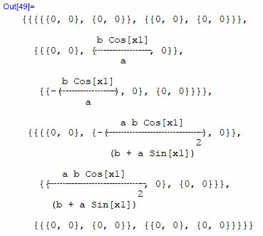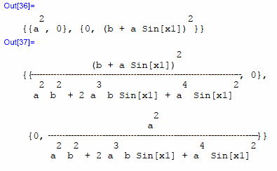 gxx=DiagonalMatrix[a^2,(b+a*Sin[x1])^2 ]