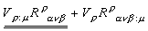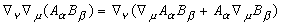 以降、共変微分オペレータを右に ”▽μ” と書く変わりに ”:μ” と変数の右に書くようにします。つまり上記の式は