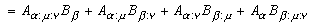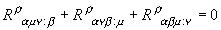 この式の右辺はインデックスβ,μ,νの順序に依存しない項から成っています。そこで、等式の左辺も含め、以下の様に循環的に入れ替えて見ると