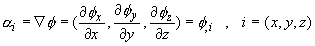 gradφとも書き、演算結果は傾きの方向を表すベクトル場を与えます。