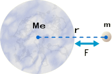 ここでm1、m2を地球と小さな質点とします。それぞれの質量をm、Meとしましょう。