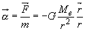 ベクトルrを重力源を原点とする位置ベクトルとします。 重力加速度αは原点向きに向かうベクトルであるため、位置ベクトルを基準に取ると、負の符号が付きます。