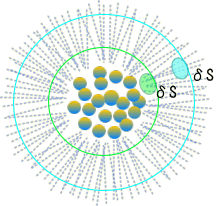 地表を過ぎると質量密度はゼロになります。 重力線の湧き出し口が無くなるため、これ以上領域Sを広げてても、領域S上の重力線総数は増えません。 逆に閉領域V内の質量密度とS面上の重力線密度は同時に下がっていきます。 その事が|α|の減少に現われていると見ることが出来ます。